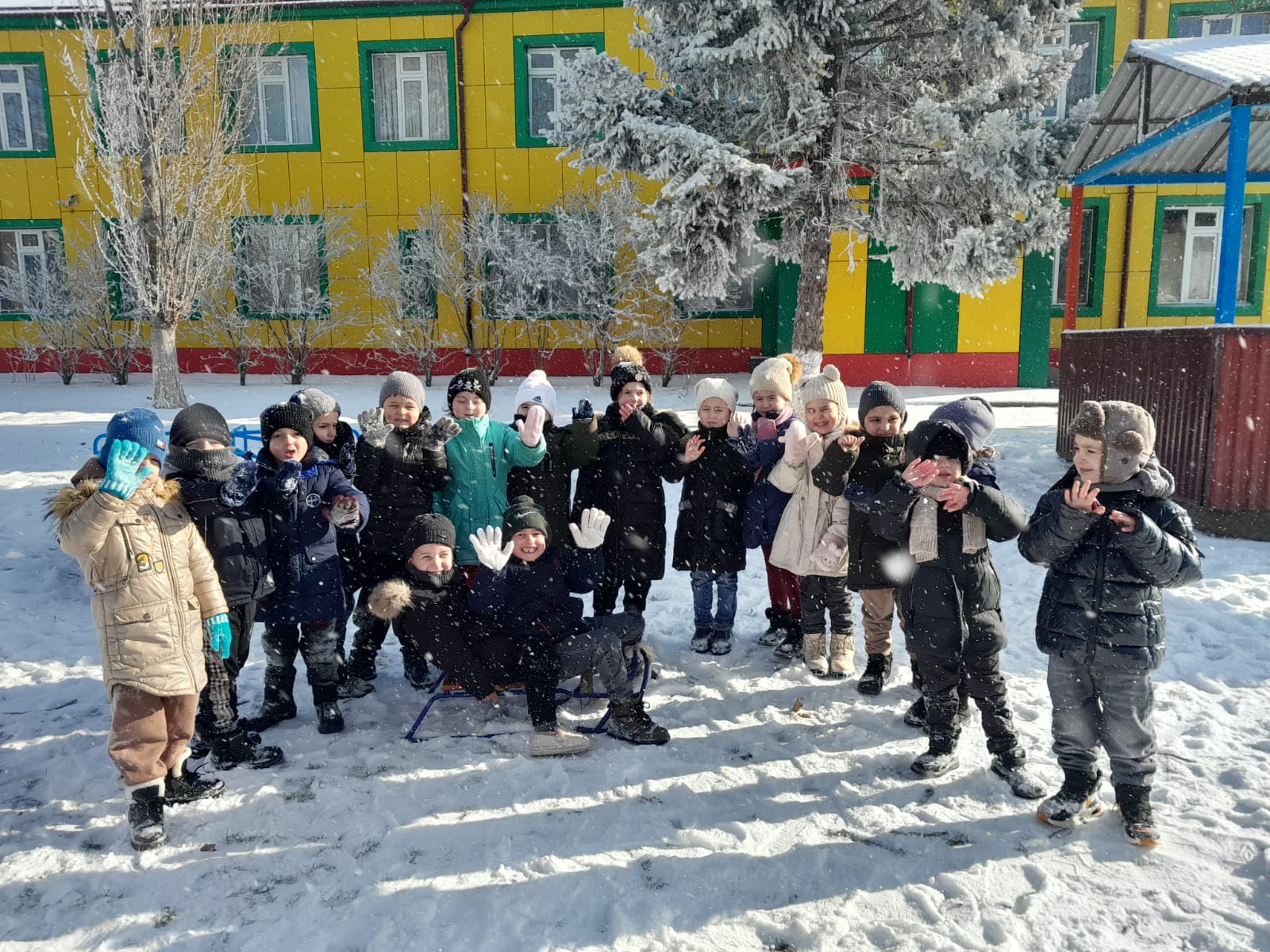 Пришла красавица- зима,укрыла снегом все дома.А мы оденемся теплей и побежим играть скорей.На санках покатаемся,в сугробах покопаемся.Как здорово играть зимой,совсем не хочется домой.