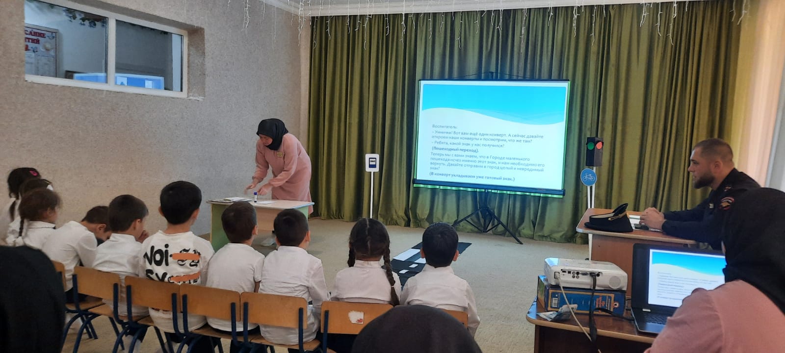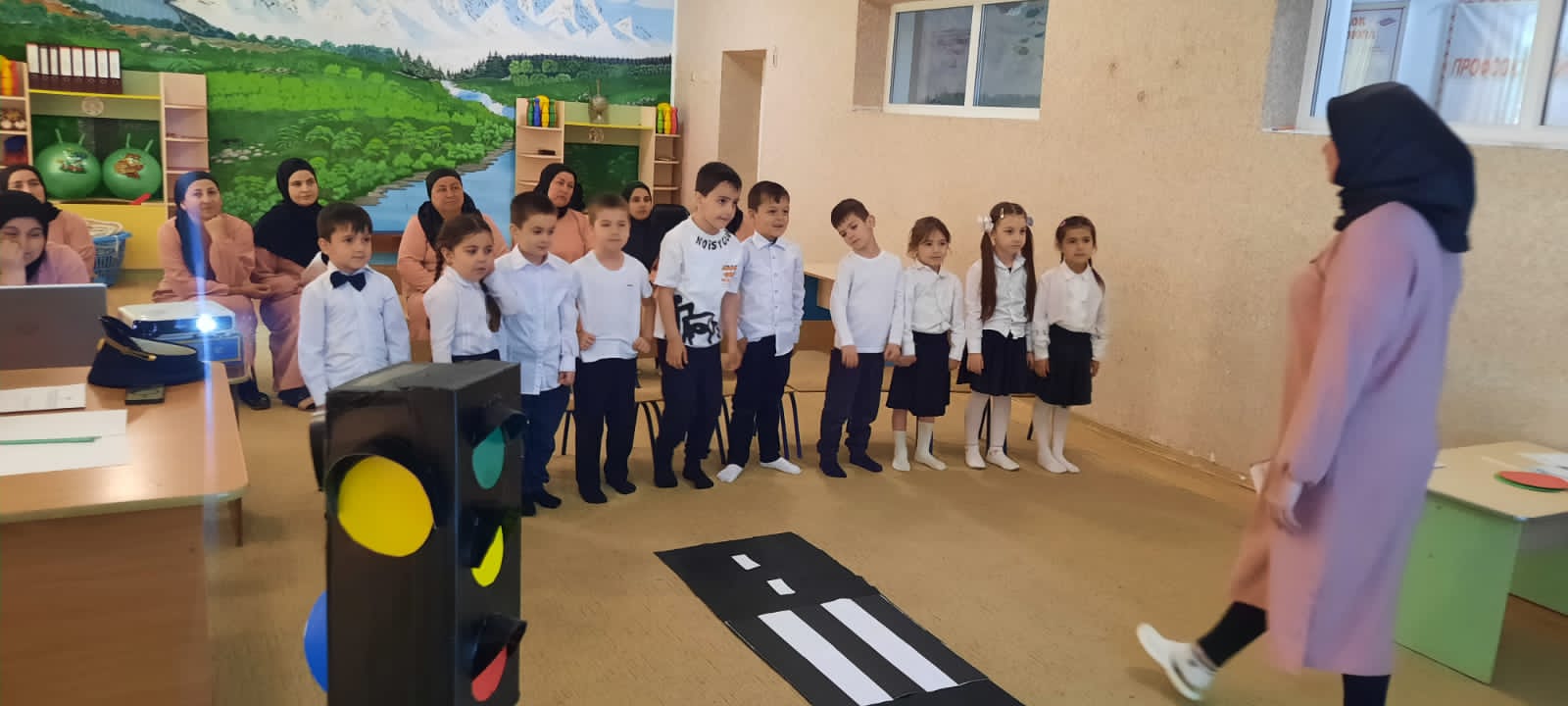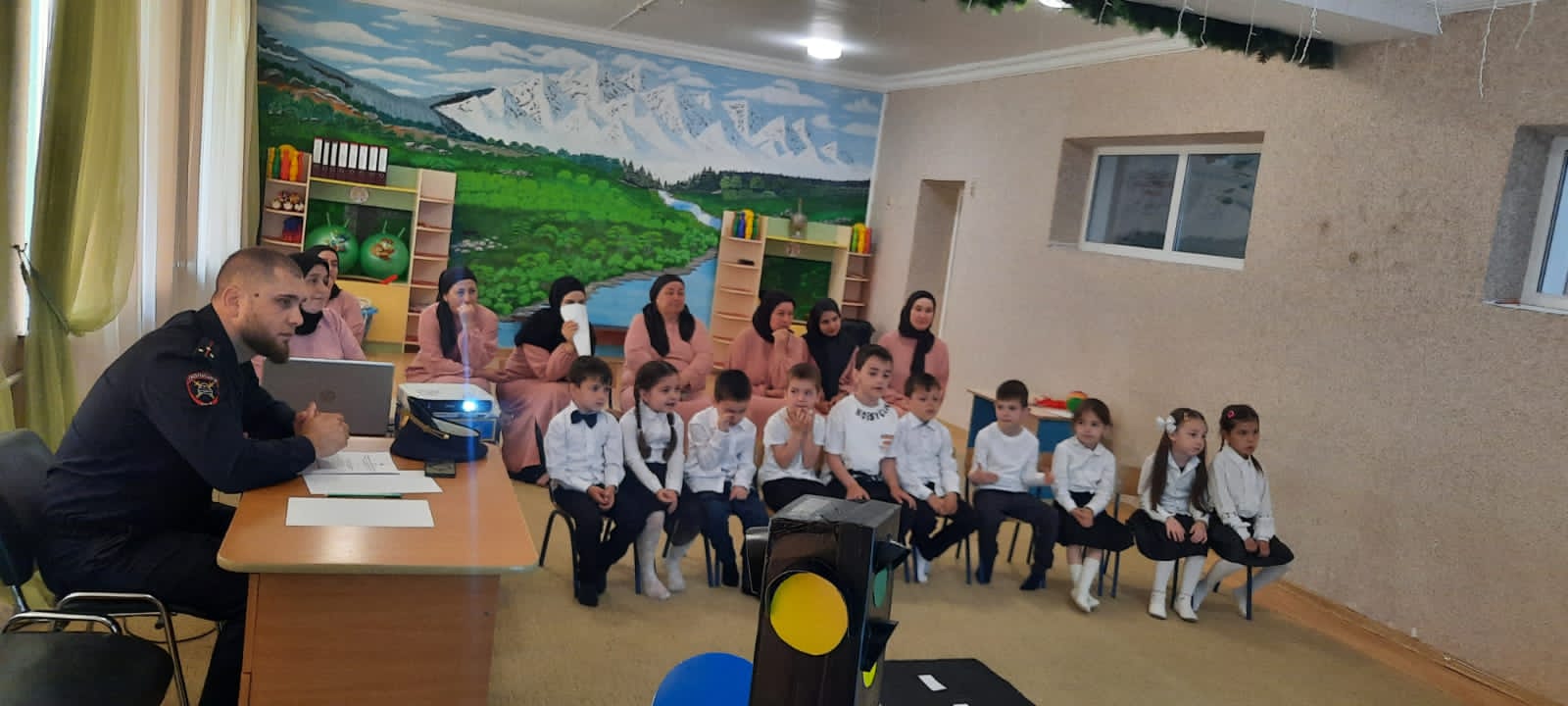 Воспитатель Байдарбаева Зулай Эмиюллаевна провела открытый ООД в сташей группе на тему: Город Маленького пешехода.На утреннике присутствовал инспектор по пропаганде БДД ОГИБДД ОМВД России по Наурскому району ЧР старший лейтенант полиции Бетербеков Хамзат Исаевич.